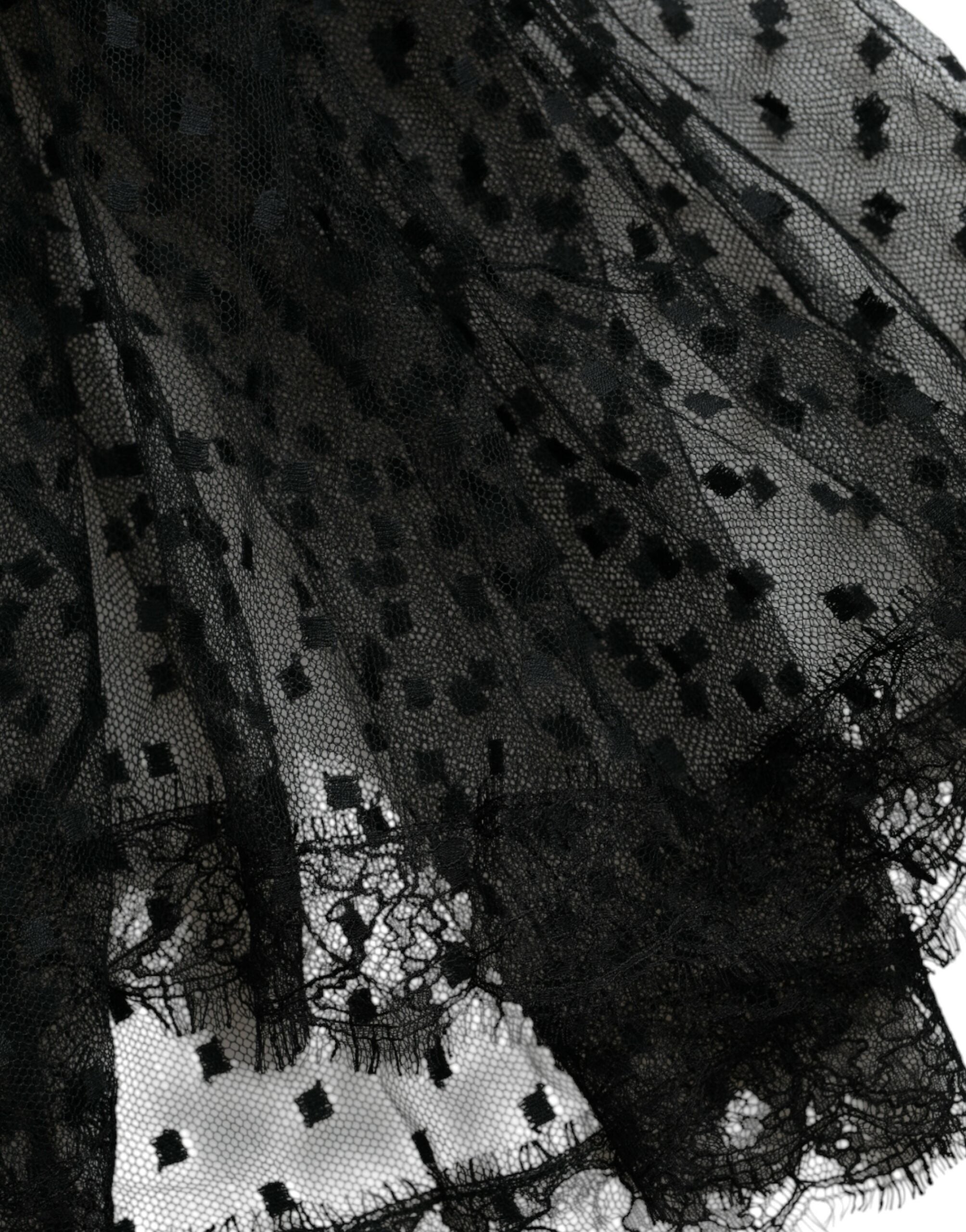 Dolce & Gabbana Black Nylon Lace Trim High Waist A-line Skirt