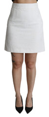 Dolce & Gabbana White Floral High Waist Mini Brocade Skirt