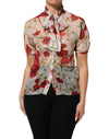 Dolce & Gabbana White Floral Tie-Neck Poppy Print Blouse Top