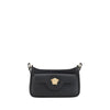 The Mini Medusa Leather Shoulder Bag by Versace is a sophisticated and practical accessory perfect for those seeking elegance and functionality. Made of high-quality leather, it features an adjustable flat strap that allows it to be worn comfortably on the shoulder or crossbody. The top zipper closure provides security, while the front pocket with magnetic flap is embellished with the iconic golden Medusa logo, a distinctive symbol of the brand. Inside, the single compartment offers enough space for your essentials, making it ideal for a chic and versatile everyday look.