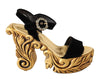 Dolce & Gabbana Black Gold Baroque Velvet Heels Crystal Shoes