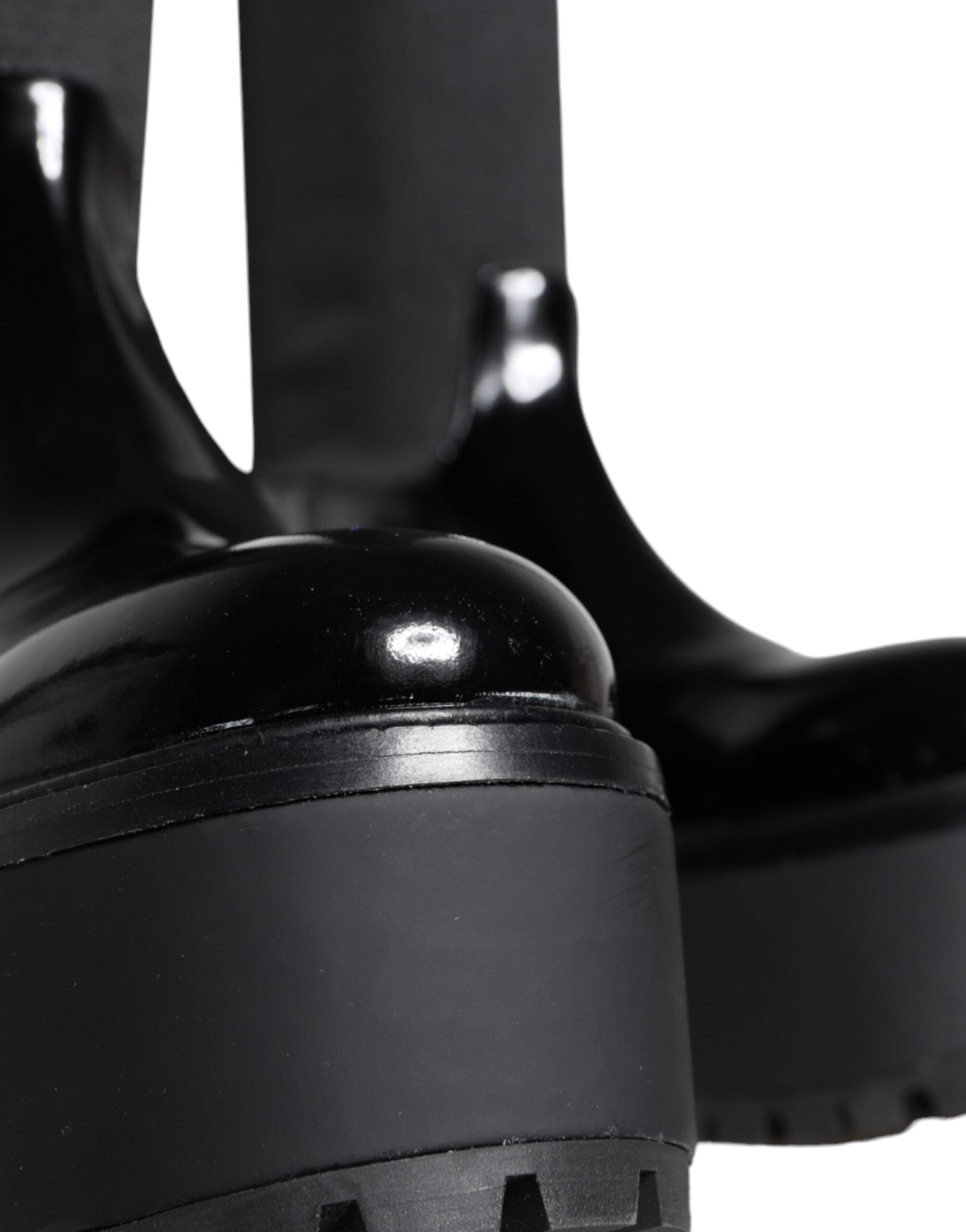 Dolce & Gabbana Black Leather Jersey Knee High Boots Shoes