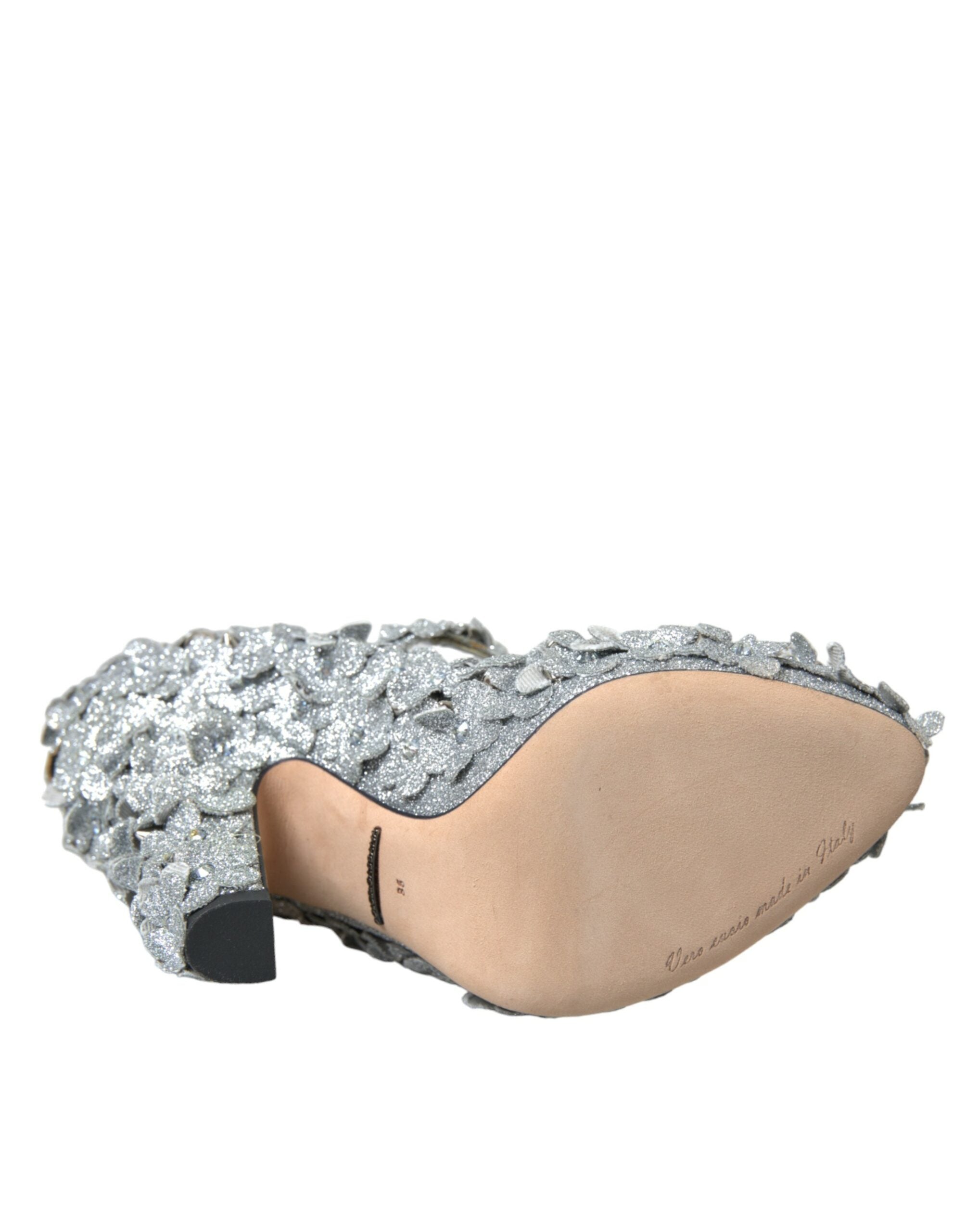 Dolce & Gabbana Silver Floral Crystal Mary Jane Pumps Shoes