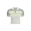 The Tennis Polo Shirt by Casablanca is a garment that blends sporty elegance with contemporary design. Made from white knit fabric, it features short sleeves and contrasting shoulders in gray and lime green, creating a dynamic visual effect. The striped collar and half zip closure add a functional and stylish touch. The Casablanca logo embroidered on the chest and ribbed hems complete the design, while the slim fit enhances a sophisticated and sporty silhouette. A versatile and trendy piece, perfect for those looking for a fresh and modern style.