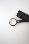 Dolce & Gabbana Black Leather Logo Metal Ring Keychain Keyring