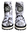 Dolce & Gabbana White Plush Logo Padded Mid Calf Boots Shoes