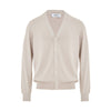 Gran Sasso Beige Cotton Cardigan Sweater. Classic fit, front button closure, contrasting knit trim, deep V-neck, soft cotton.