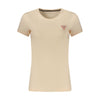 Indulge in the epitome of casual chic with this GUESS JEANS short-sleeved T-shirt. Designed to accentuate your fashion-forward lifestyle, it features a flattering wide neck and a bold applique logo that effortlessly captures attention. Crafted from a premium blend of 95% organic cotton and 5% spandex, this top promises both sustainable comfort and an adaptable fit. Whether it’s a casual day out or a laid-back evening, exude confidence in this striking rosa piece. Let this GUESS JEANS creation be your go-to style statement.