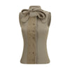 The asymmetrical jersey Top by Lemaire is an elegant and refined garment, made from ribbed cotton and linen. It features a tone-on-tone double button closure with mother-of-pearl buttons, a crew neck with integrated scarf, and a sleeveless silhouette. The straight hem and slim fit accentuate its modernity, making it perfect for sophisticated and versatile looks.