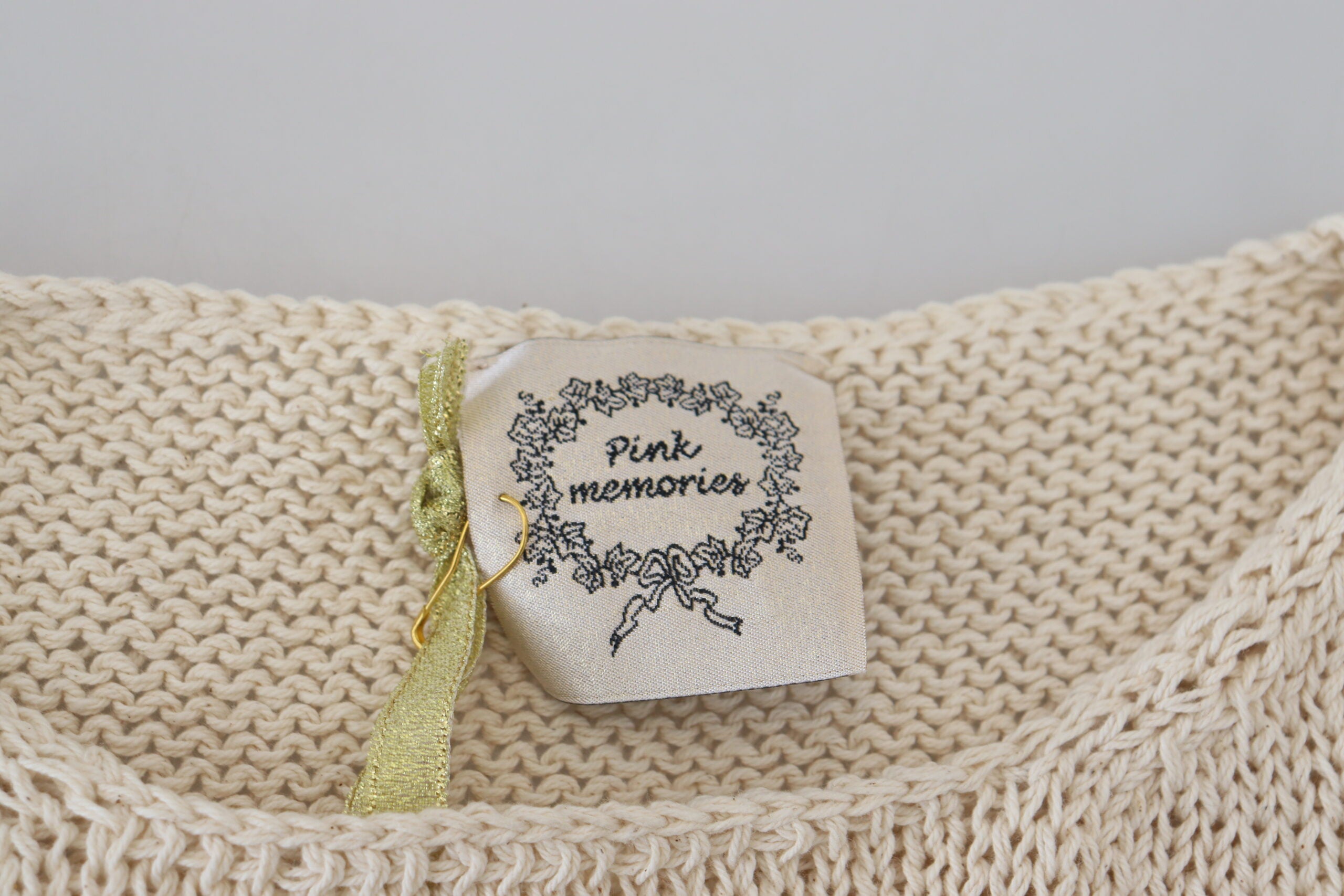 PINK MEMORIES Beige Cotton Blend Sleeveless Round Neck Tank Top