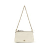 The Mini Double Bag by Pinko combines elegance and functionality in a compact format. Crafted from soft calf leather, it features a clean rectangular silhouette with two zip-fastened compartments for practical organization. The interior is finished with a cotton lining, while the removable and adjustable leather-and-chain shoulder strap allows for versatile styling. The design is completed by the iconic Love Birds logo.
