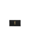 Leather Matellassè Wallet by Saint Laurent, gold brand logo on front, button closure on front, two compartments with one zip pocket, slots card, gold brand logo inside.