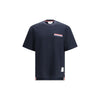 The Short-sleeve cotton-linen T-shirt by Thom Browne featuring a ribbed texture that blends comfort with refined structure. The chest pocket adds a functional note, while the striped detail and logo patch reference the brand’s signature codes. Button accents elevate the design with a tailored touch, redefining a casual staple through Thom Browne’s precise and unmistakable aesthetic.