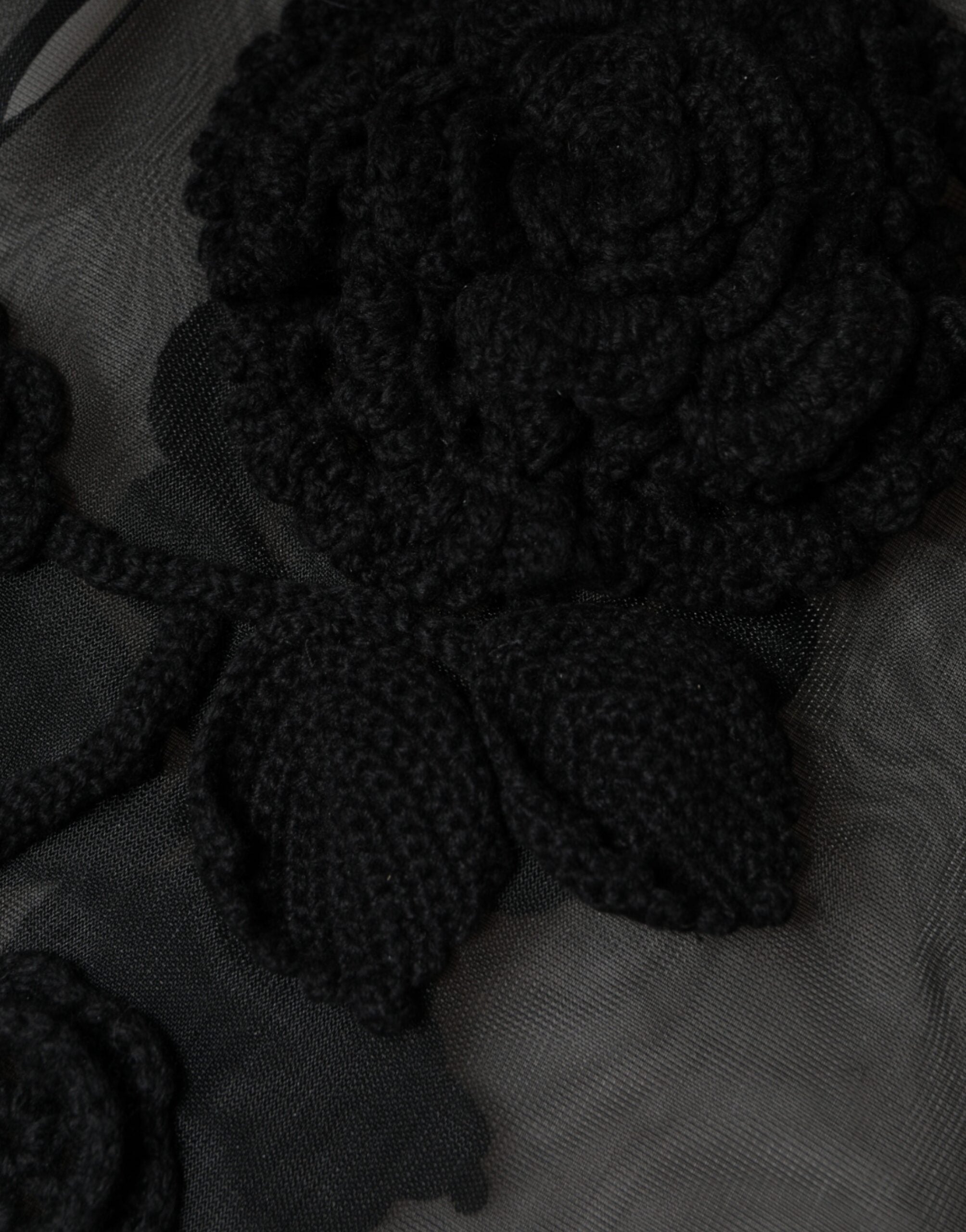 Dolce & Gabbana Black Nylon Mesh Transparent Floral Blouse