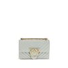 The Mini Love leather Shoulder Bag by Pinko is a perfect mix of elegance and functionality. The front closure with magnetic flap ensures safety and practicality, while the iconic gold-plated Love Birds logo embossed on the front adds a touch of distinctive luxury. The quilted and padded design is not only refined, but also gives a feeling of softness and comfort. The double internal compartment offers enough space to keep everything in order, while the sliding chain shoulder strap allows you to adjust it to your preferred height, making it perfect for any occasion. The internal slip pocket and the tone-on-tone embroidered brand monogram on the back add exclusive details that make this bag a must-have.