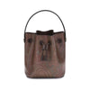 The Arnica mini bucket Bag by Etro is crafted from the Maison’s signature Paisley jacquard canvas, enhanced with tone-on-tone leather trim that enhances its elegance. Featuring an adjustable shoulder strap and a braided drawstring closure, it features gold-finish metal details and metal feet for added protection and style.