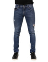 Dolce & Gabbana Blue Washed Skinny Cotton Tattered Denim Jeans