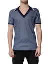Dolce & Gabbana Blue Collared V-neck Silk Blend Polo T-shirt