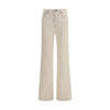 The high-waisted bootcut Jeans by Burberry are made in Italy from stretch denim for comfort and a flawless fit. Featuring contrasting topstitching and an original rotated seam detail, they have a classic five-pocket design enhanced by Equestrian Knight Design embroidery on the back. Antiqued metal hardware adds a heritage touch, while an adjustable B-buckle strap at the back allows for a custom fit. The bootcut silhouette, which is fitted at the hips and slightly flared at the bottom, elegantly flatters the figure.