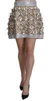 Dolce & Gabbana Silver Silk Crystal High Waist Mini Skirt