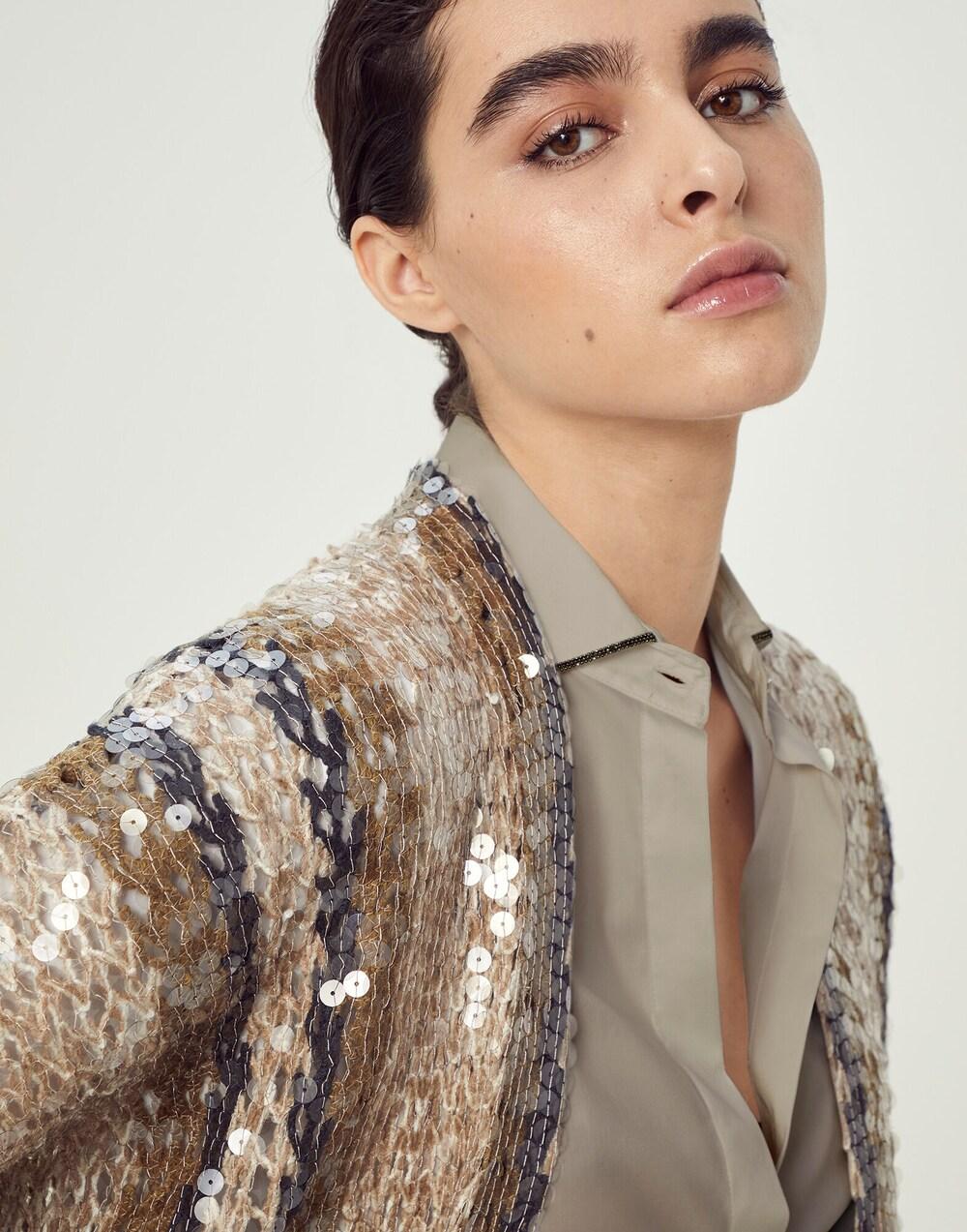 Drape yourself in luxury with the BRUNELLO CUCINELLI Women’s Sweater, where Italian craftsmanship meets contemporary style. This ethereal Ether-hued summer knitwear is a fashion-forward statement, blending a harmonious mix of materials for a tactile experience that’s as sumptuous to the touch as it is to the eye. With its fresh color and sumptuous blend, it’s a versatile luxury that transcends seasons. New with tags, this piece is waiting to elevate your wardrobe.