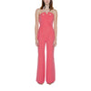 The Silence TUT630PE24 women’s elegant jumpsuit stands out for its sophisticated and modern design. Made from 95% polyester and 5% spandex, it ensures a comfortable fit and slight stretch that enhances the figure. The strapless model features a refined sweetheart neckline with gold button details on the front, while the high waist and wide-leg cut create a flattering and feminine silhouette. Side pockets add practicality and style, making this jumpsuit perfect for special occasions, evening events, or ceremonies. A versatile garment that combines elegance and comfort, ideal for those who want to stand out with class.