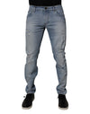 Dolce & Gabbana Blue Tattered Cotton Skinny Men Denim Jeans