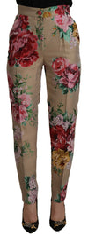 Dolce & Gabbana Beige Floral Dress Formal High Waist Pants