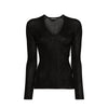 – Composition: 14% Polyamide 86% Viscose – Long sleeves – V-neckline – Semi-transparent – Elastic ribbed design – Machine wash (delicate) – Made in Italy – Gender: WOMEN –