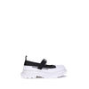 The Ballerinas are made of a mix of leather and rubber, and are distinguished by an embossed logo on the side. They feature an adjustable instep strap for a perfect fit, a reinforced toe for added durability, and a logoed pull on the heel for easy donning. The logo is also embossed on the inside, while the oversized sole provides a modern touch and ensures comfort.