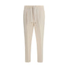 The linen Pant by Brunello Cucinelli feature an elasticated, drawstring-adjustable waistband for a comfortable, customizable fit. The front zipper and hook-and-eye closure adds practicality and an elegant touch. Two side slash pockets and two back slit pockets offer functionality and a refined design.