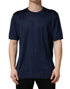 Dolce & Gabbana Dark Blue Silk Short Sleeve CrewNeck T-shirt