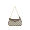 Gucci’s Ophidia mini Handbag combines elegance and contemporary style. Made of beige and ebony GG Supreme fabric with brown leather trim and gold detailing, it features the iconic double G on the front. Internally, the cotton and linen lining houses an open pocket. A chain handle and top zipper closure complete the design, ensuring practicality and sophistication.