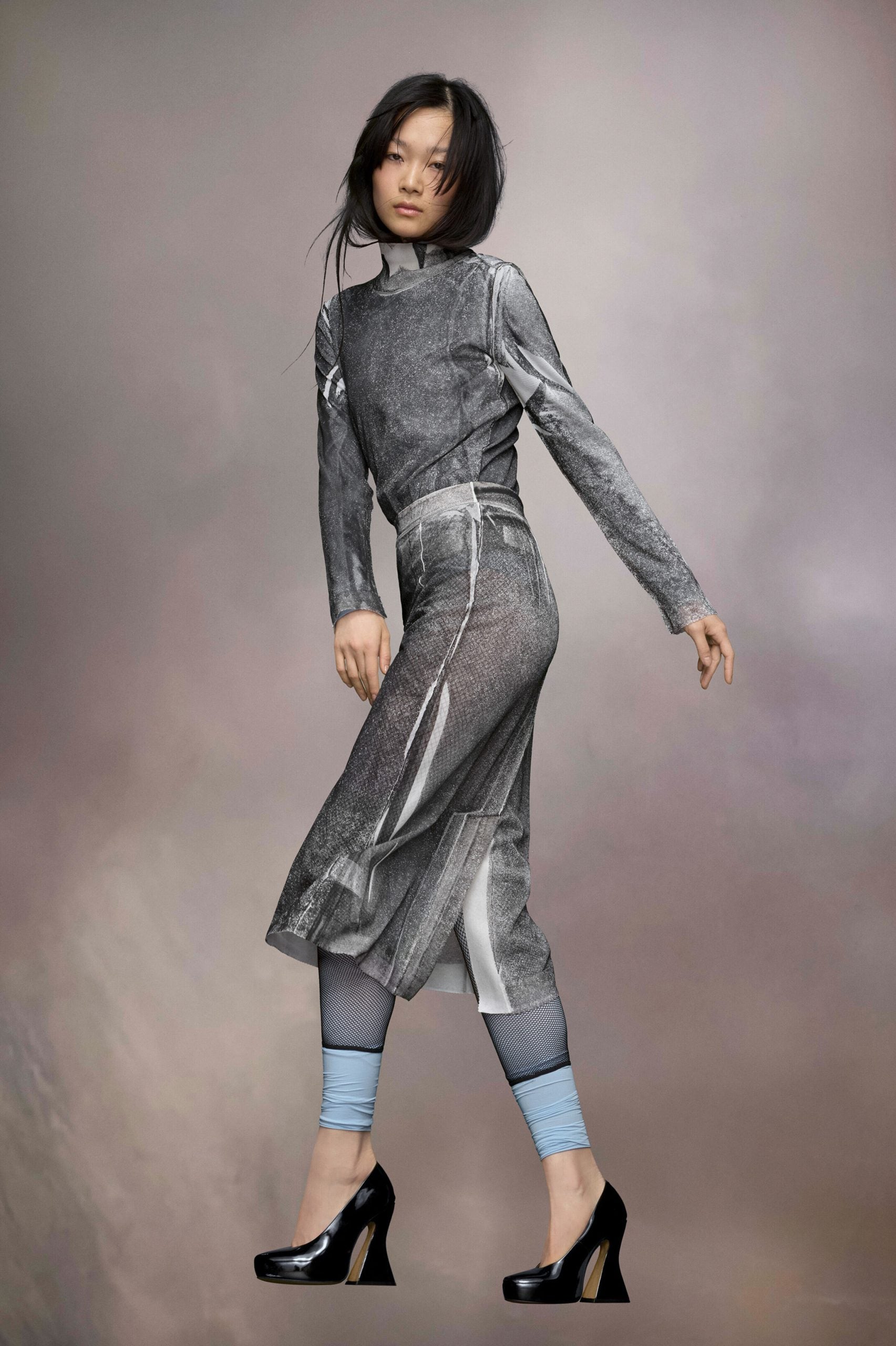 Maison Margiela Black And White Fibres Midi Skirt