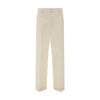 Cotton Pants by Miu Miu, front button and zipper closure, two side slash pockets, two welt pockets at back, waistband loops, iconic embroidered brand signature patch at back.