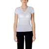 The Armani Exchange women’s t-shirt model XW000521 AF10359 is an essential and versatile piece for every woman’s wardrobe. Made from 100% pure cotton, it ensures a lightweight and breathable feel, perfect for every season. The short sleeves and V-neckline enhance the silhouette, offering a comfortable and modern fit. The subtle Armani Exchange logo on the chest adds a refined and recognizable touch. Perfect for both casual looks and more elegant outfits, this t-shirt stands out for its high-quality materials and attention to detail.
