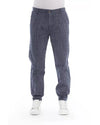 Versatile Cotton Chino Trousers in Blue, front zipper and button closure, side pockets and back welt pockets, suitable for men, 100% cotton, size on tag: 54 IT.