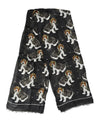Dolce & Gabbana Black Dog Print Modal Wool Wrap Foulard 178cm X 63cm Scarf