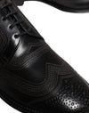 Dolce & Gabbana Black Embroidered Classic Leather Derby Dress Shoes