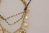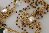 Dolce & Gabbana Gold Brass Crystal Floral Statement Charms Necklace