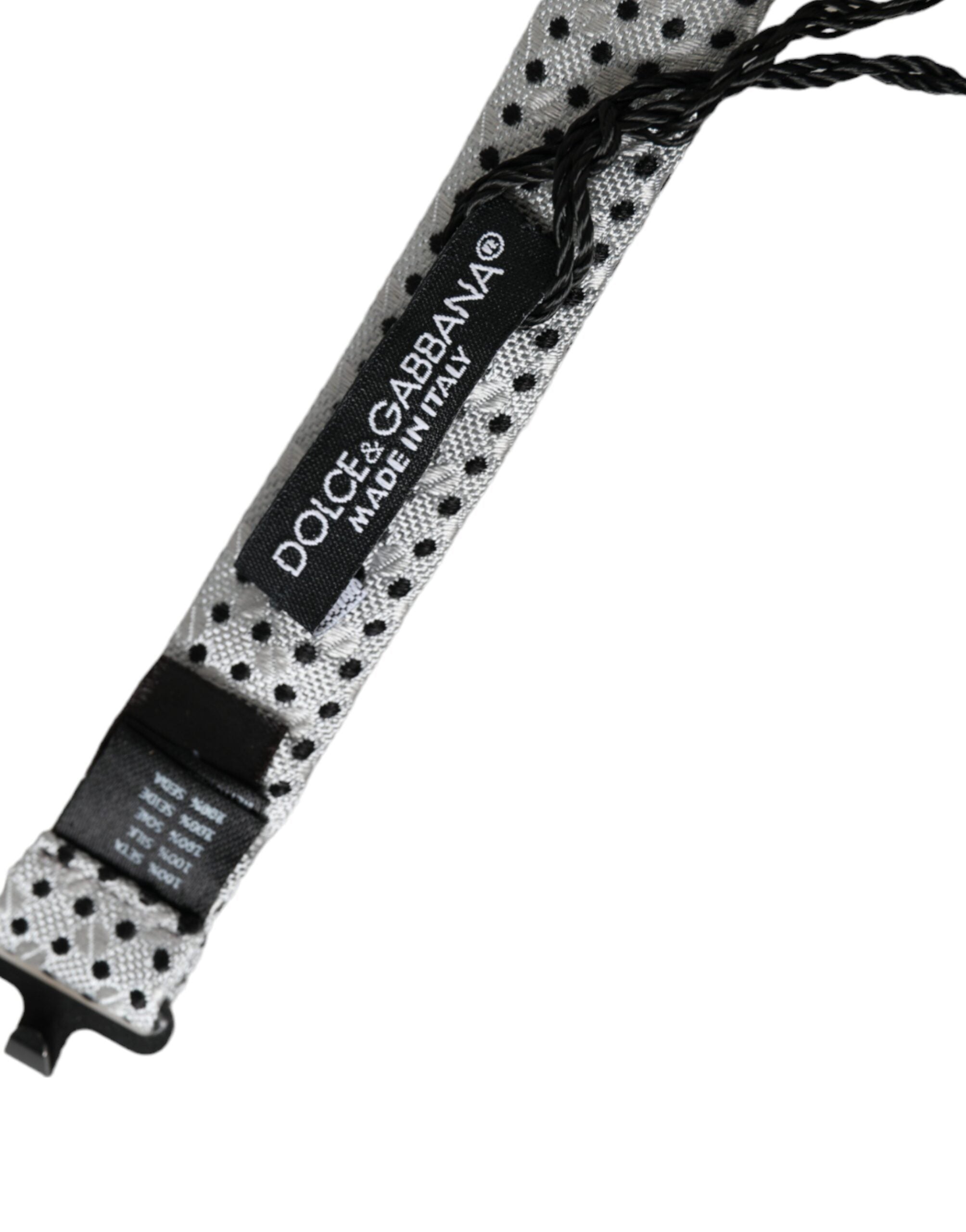 Dolce & Gabbana Gray Silk Polka Dot Adjustable Neck Men Papillon Bow Tie