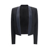 The cropped single-breasted Jacket by Tom Ford delivers a bold and contemporary expression of elegance through sharp contrasts and refined proportions. The open-front design enhances the cropped silhouette, while the wide two-tone shawl lapels stand out as a defining feature. Crafted from a compact fabric with a smooth finish, the jacket offers structure and a clean look, completed by structured shoulders and welt side pockets. Fully lined and cut to a regular fit, it is designed for a modern, sophisticated style.